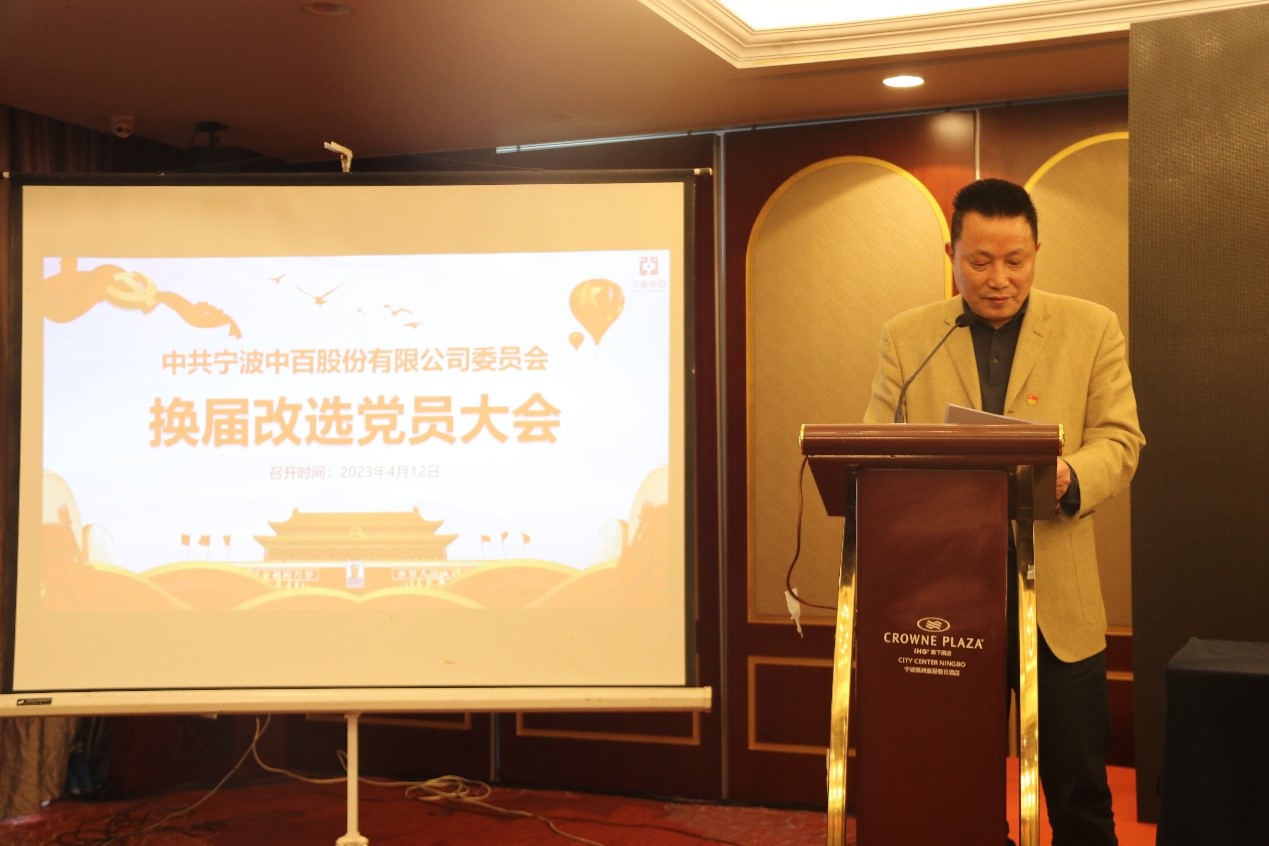 2023年4月12日下午,中共寧波中百股份有限公司黨委召開了全體黨員大會,進行換屆改選。